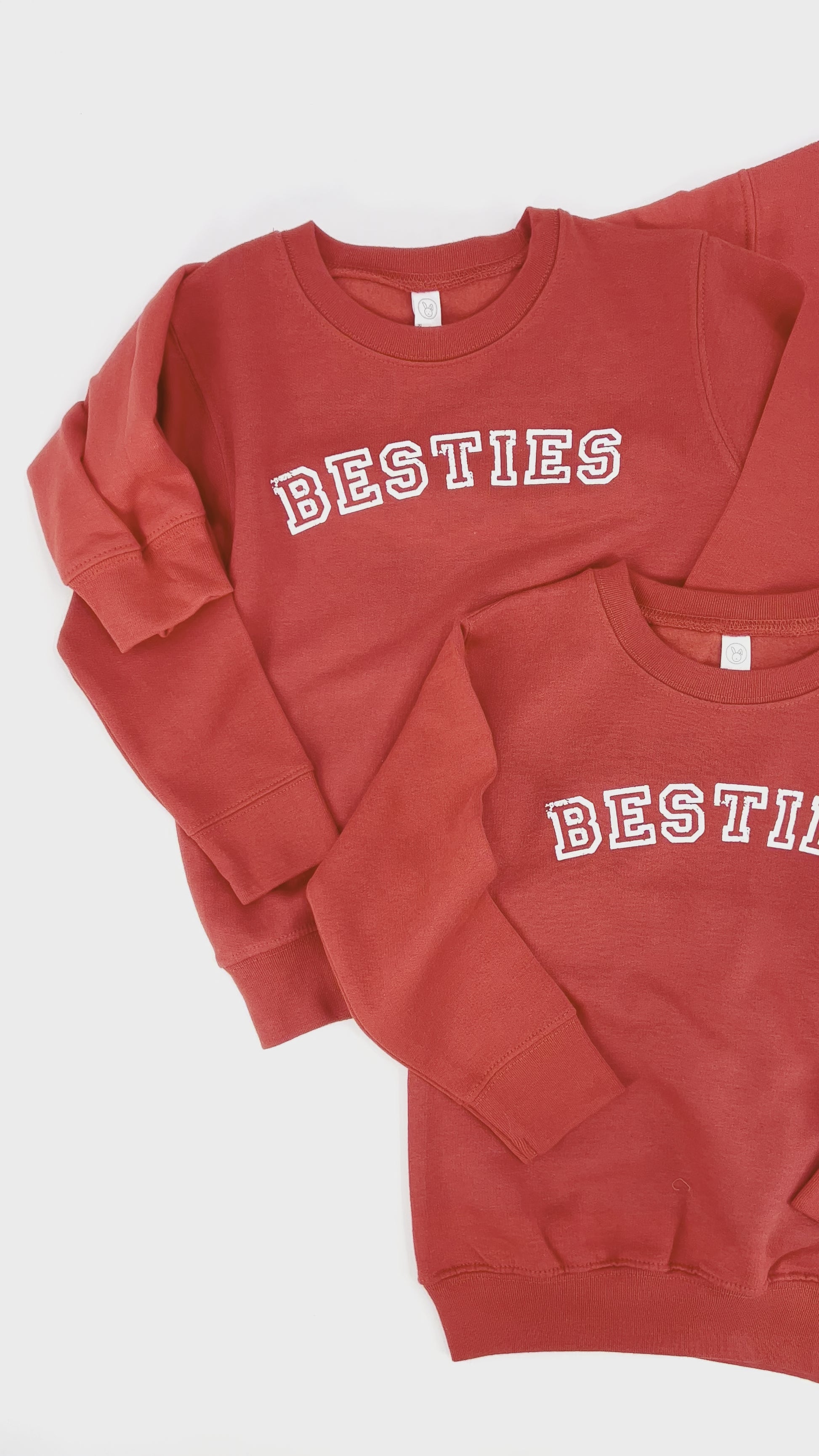 These red sweatshirts with the "Besties" design are the perfect way for parents and children to celebrate their special bond this Valentine's Day. The matching sweatshirts feature a bold white "Besties" design, making them a fun and fashionable choice for any outing. Whether you're enjoying a movie night in or hitting the town, these cozy sweatshirts will keep you and your little one feeling warm and connected. Get one for you and one for your child, or gift a set to a parent and child duo in your life. Order now and spread the love on Valentine's Day!