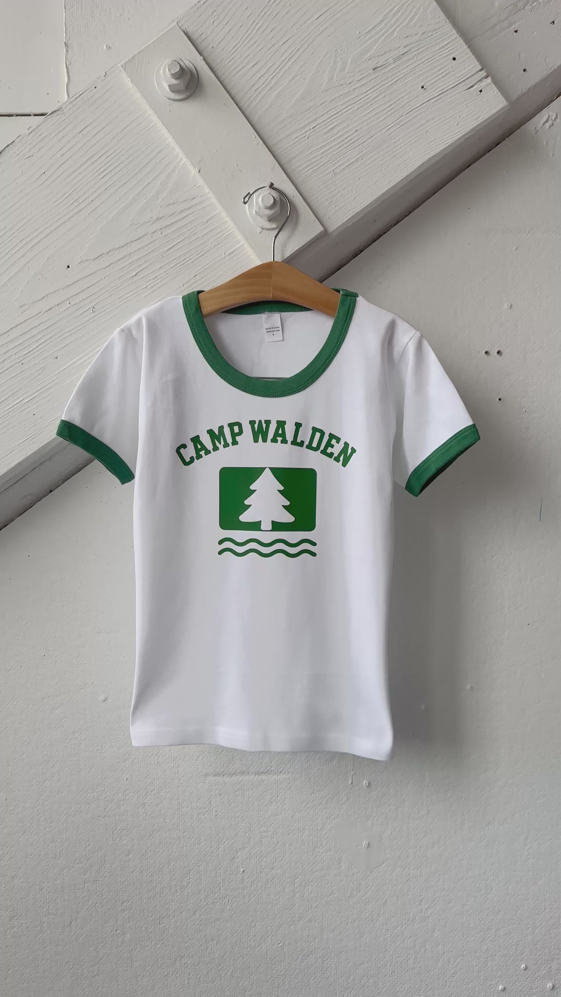 Celebrate the nostalgia of The Parent Trap with this playful Camp Walden Girls 90s Shirt. Featuring a bright green pine tree logo topped with a cheerful "camp walden" arch, this ringer tee's classic white and green design adds a fun, retro vibe perfect for any 90s fan. Comfortable and stylish, it’s your go-to choice for casual days filled with adventure and memories.
