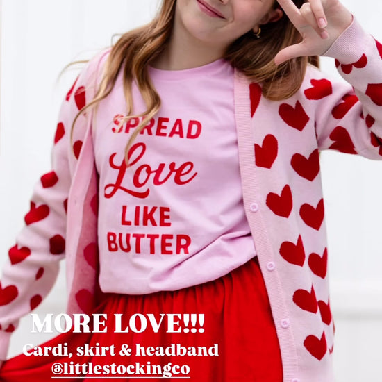 Spread the warmth this Valentine's Day with this adorable sweatshirt that celebrates love in the sweetest way. Available in soft pink or creamy ivory, this cozy piece features "Spread Love Like Butter" emblazoned in cheerful red lettering, a delightful reminder to share kindness generously. Perfect for expressing your affectionate side with a touch of whimsy, whether you're celebrating with someone special or treating yourself to feel-good fashion. Snuggle up in comfort while spreading joy wherever you go.