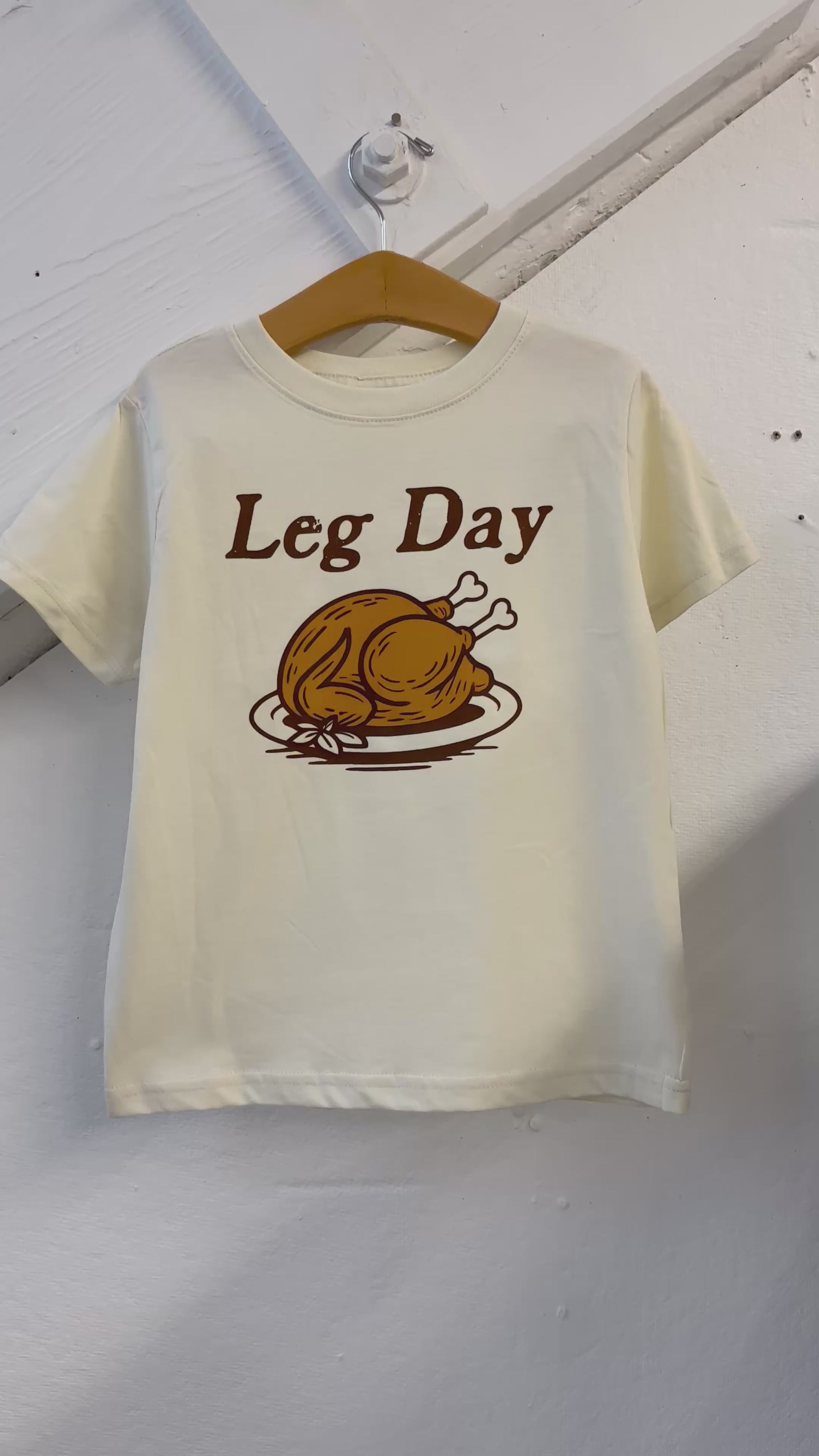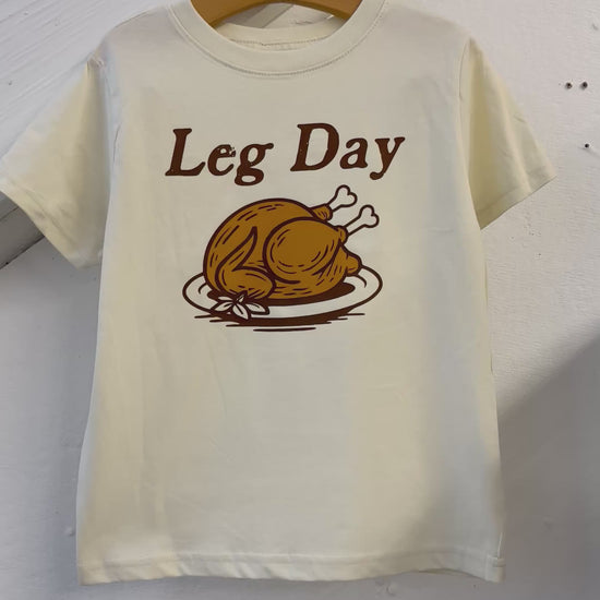 Perfect for the holiday season, this playful Leg Day Tee flips the script on fitness humor with a cheeky twist. Featuring bold "Leg Day" text paired with an illustration of a perfectly roasted turkey below, it's the ideal conversation starter for Thanksgiving gatherings or anyone who appreciates witty apparel. Soft, comfortable, and guaranteed to earn laughs..