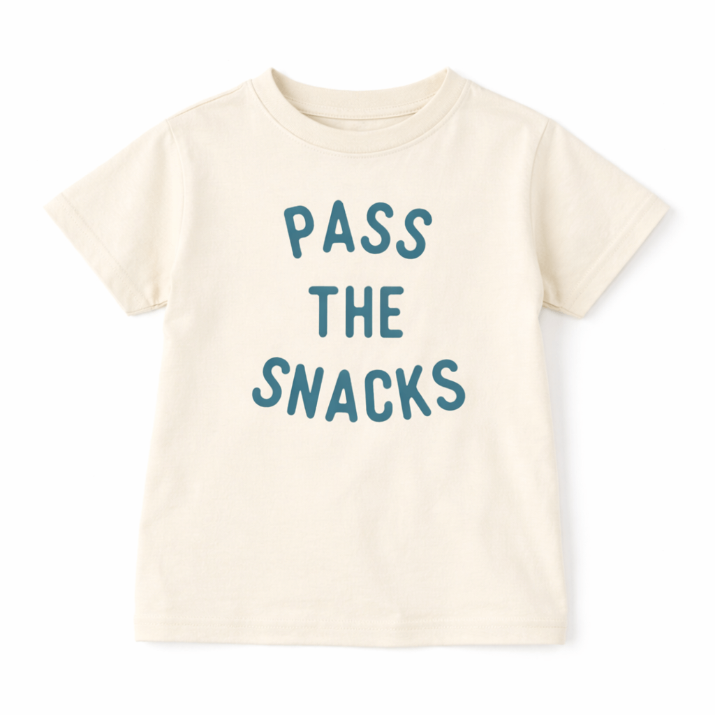 This shirt gets right to the point - snacks. You love 'em we love 'em, pass 'em over! This cute tee comes in a bestselling natural tee. Our screen prints are durable and hand printed - you'll love 'em!
