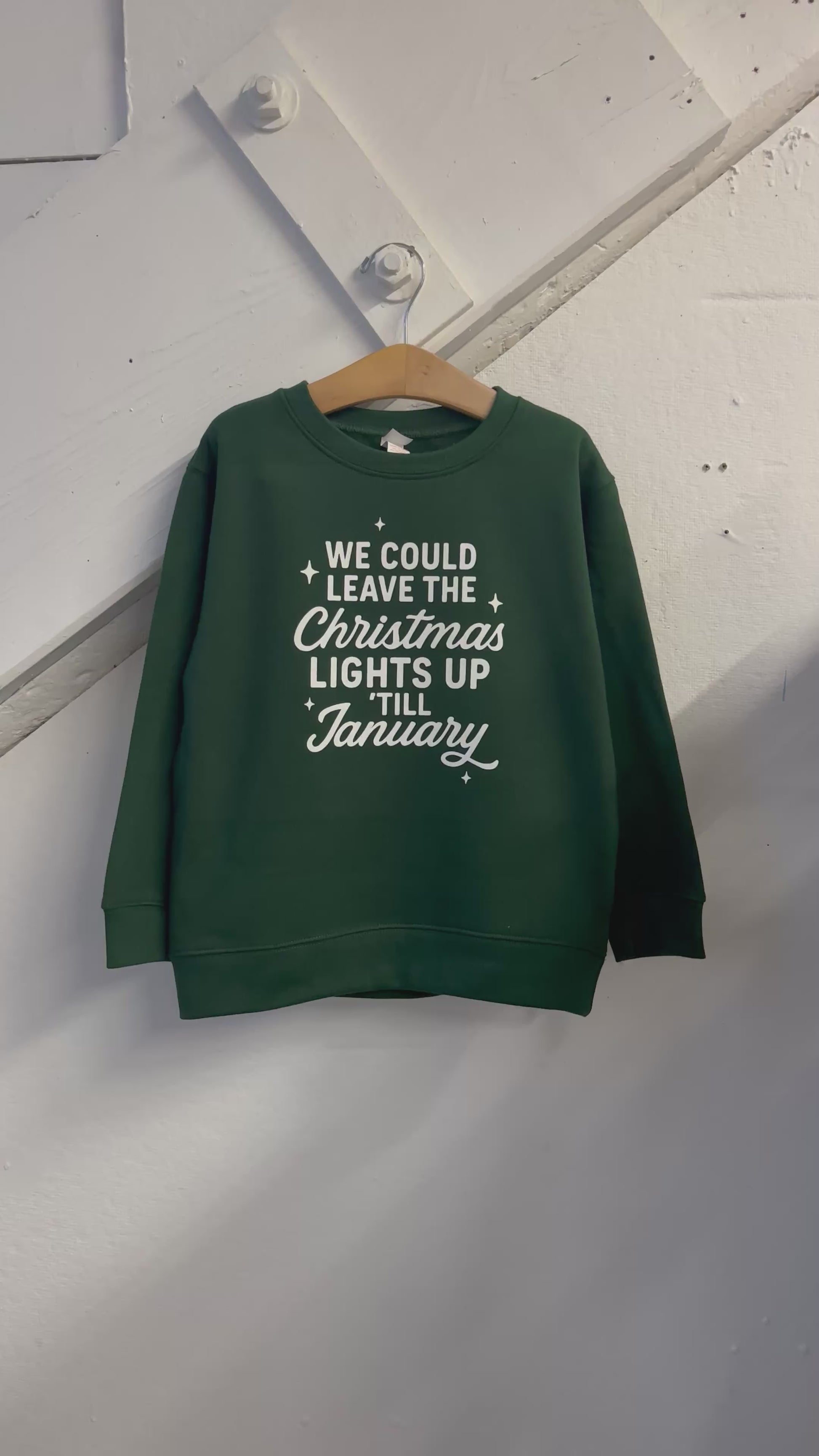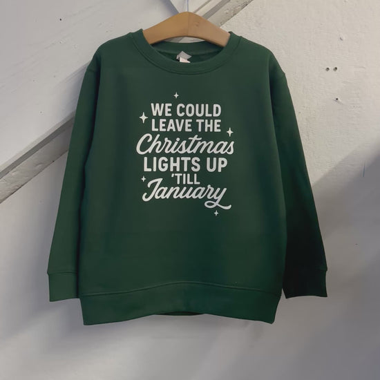 Keep the Christmas spirit going with this forest green sweatshirt featuring the famous quote "We Could Leave the Christmas Lights Up Till January." Perfect for the holiday season, this cute sweatshirt will keep you cozy and stylish. (Bonus points if you can actually leave your lights up till January!)